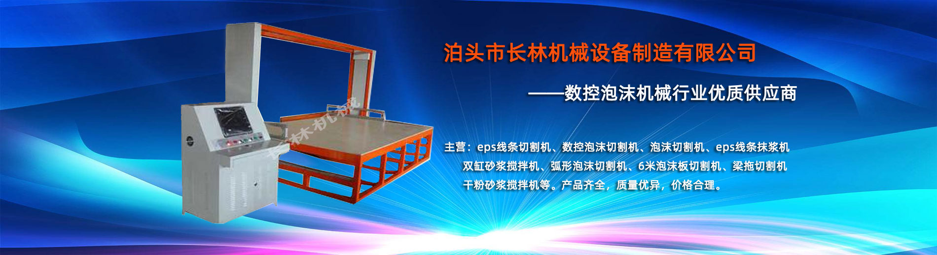 泊頭市長(zhǎng)林機(jī)(jī)械設(shè)(shè)備制造有限公司座落于河北省泊頭市開發(fā)(fā)區(qū)(qū),地處北京、天津、濟(jì)(jì)南、石家莊中心位置。京滬高速、京滬鐵路、106國道、104國道穿行于本市,交通便利。 本公司是集多功能數(shù)(shù)控泡沫切割機(jī)(jī)的自主研發(fā)(fā)、生產(chǎn)(chǎn)、銷售和服務(wù)(wù)于一體的企業(yè)(yè),eps線條設(shè)(shè)備,數(shù)(shù)控泡沫切割機(jī)(jī),發(fā)(fā)泡陶瓷切割機(jī)(jī),eps線條切割機(jī)(jī)銷往全國各地,并開辟了國際合作的廣闊渠道。創(chuàng)(chuàng)新不斷的長(zhǎng)林?jǐn)?shù)控機(jī)(jī)械有限公司經(jīng)(jīng)過幾年的不斷研究,完善了建筑裝飾構(gòu)(gòu)件的配套設(shè)(shè)備和自動(dòng)化設(shè)(shè)備,由過去手工生產(chǎn)(chǎn)到半自動(dòng)生產(chǎn)(chǎn)發(fā)(fā)展到現(xiàn)(xiàn)在的CNC控制的全自動(dòng)零誤差數(shù)(shù)控泡沫切割機(jī)(jī)床。不但讓客戶在交貨期上面爭(zhēng)取了時(shí)(shí)間而且···